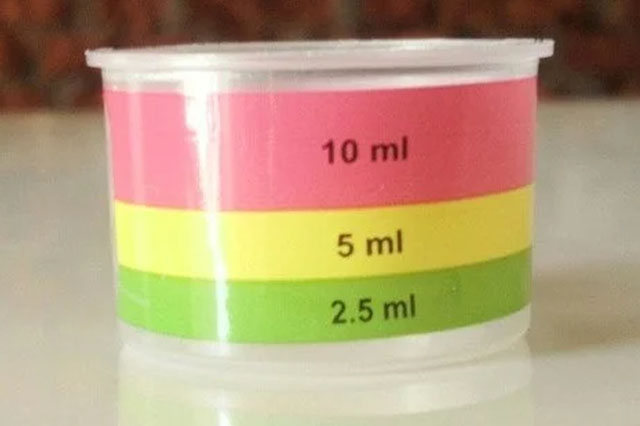 Three color hot foil printed measuring caps 10ml (25mm) to indicate each volume marking in different color as seen in image. The packing size available is 7000 Pieces per box. The mariking available is 2.5ml, 5ml & 10ml.